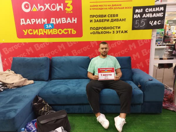 Как сообщал «Байкал-Daily», он стартовал в четверг, 21 июля. По его условиям, участникам запрещалось вставать с дивана при каких-либо условиях. Вопрос, как участники ходили в туалет, так и остался загадкой. Мероприятие организовал местный мебельный магазин.