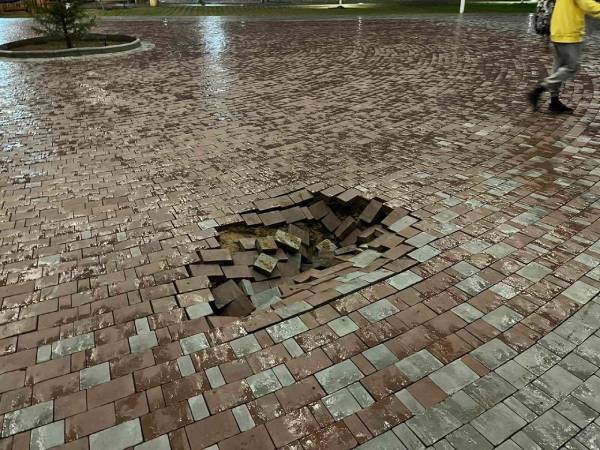 Несмотря на то, что дожди в Селенгинском районе явление частое, до этого разрушительных последствий не было. Однако в этот раз сквер «не устоял». Судя по фото, землю под плиткой размыло, и кирпичи попадали вниз.