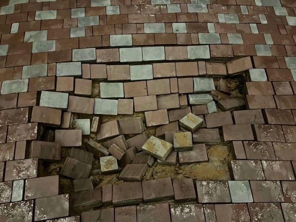 Несмотря на то, что дожди в Селенгинском районе явление частое, до этого разрушительных последствий не было. Однако в этот раз сквер «не устоял». Судя по фото, землю под плиткой размыло, и кирпичи попадали вниз.