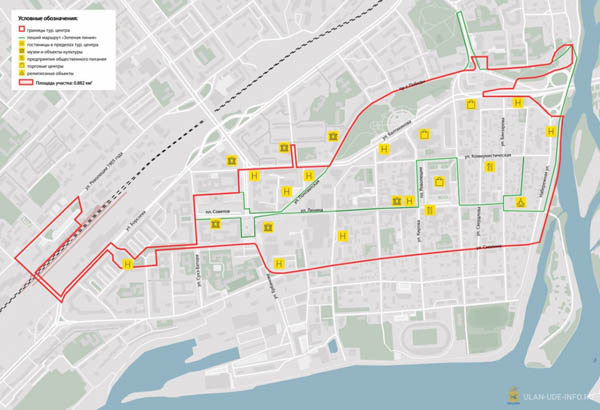 Туристический центр Улан-Удэ сформирован в пределах улиц Борсоева – Набережная с севера на юг и в пределах улиц Смолина – Коммунистическая с запада на восток (протяжённость с севера на юг – 2000 м; с запада на восток – 300–700 м). Все мероприятия туркода будут синхронизированы с мастер-планом развития города, а также с мероприятиями восьми национальных проектов, в которых сейчас участвует Улан-Удэ. Благодаря этому в городе идёт масштабное строительство детсадов, школ, стадионов, ремонт дворов и дорог, теплотрасс и т.д. Проект Ростуризма даёт возможность создать в Улан-Удэ новые интересные пространства для жителей и гостей столицы, сообщает управление по информационной политике Улан-Удэ.