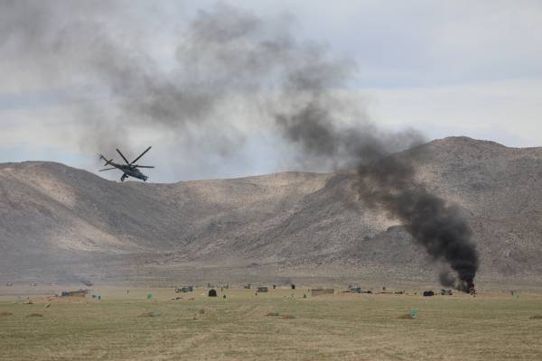 - Российские и монгольские мотострелковые подразделения на бронетранспортерах, под прикрытием вертолётов Ми-24 и Ми-8АМТШ, ствольной артиллерии, систем противовоздушной обороны, станковых противотанковых гранатометов и минометов осуществили освобождение территории в указанном районе. Также они уничтожили условное незаконное вооруженное формирование, обеспечив защиту населённого пункта в горно-пустынной местности, - сообщили в пресс-службе Восточного военного округа.