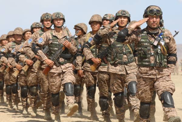 Торжественным маршем перед трибуной прошли подразделения российского Восточного военного округа и Вооруженных сил Монголии.