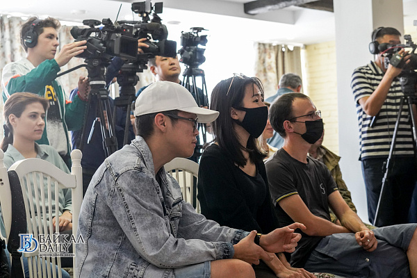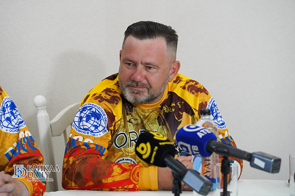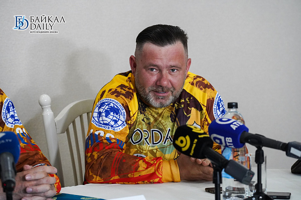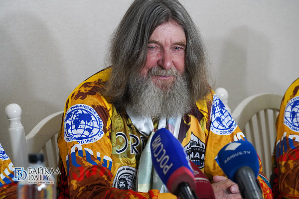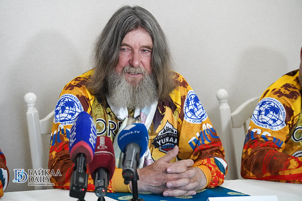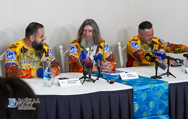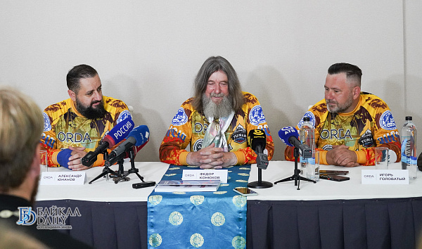 На пресс-конференции Фёдор Конюхов в первую очередь похвалил хадак, который ему вручили в аэропорту «Байкал».
