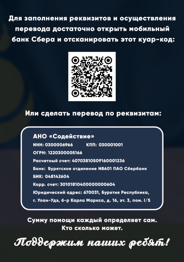 В Бурятии создали счёт для сбора помощи военнослужащим – участникам специальной военной операции в Украине. Контроль за использованием поступающих средств будет осуществлять Общественная палата Бурятии.