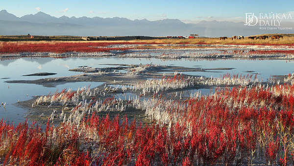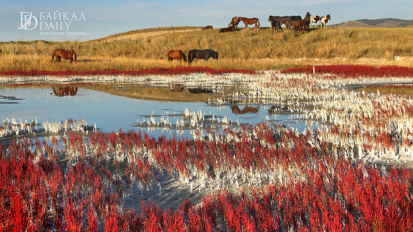 — В очередной раз уже вроде бы знакомые места Баргузинской долины удивляют чем-то новым. Хитом этого сезона стали ярко-красные травы на солончаках. Такое буйное цветение солероса, вероятно, бывает не каждый год. Если бы я сам всё это не видел, заподозрил бы, наверное, подобные снимки в наглом фотошопе. Так не бывает! Да ещё и с отражениями лошадей... Река Ина подарила несколько ярких рассветных кадров, а ущелье Аллы порадовало золотом листвы. А ещё мы увидели потрясающее движение дюн. Песок на зубах после этого зрелища скрипел ещё пару дней.