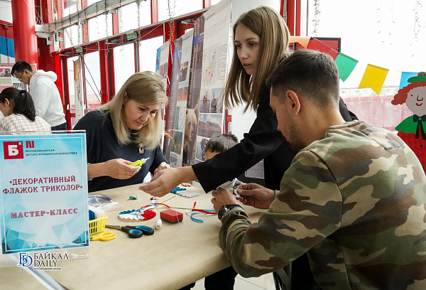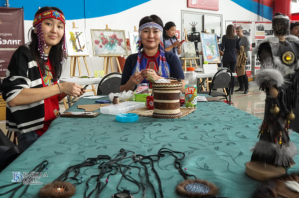В фойе ФСК развернулась выставка-ярмарка. Там же состоялись мастер-классы от центров Национального музея, Иволгинского колледжа традиционных искусств, культурной автономии эвенков. Мастера перечислят выручку в фонд «Содействие».