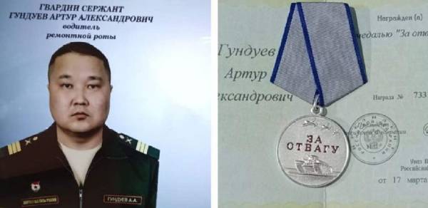 36-летний военный из Бурятии Артур Гундуев получил высокую государственную награду РФ. Ему вручили медаль «За отвагу», сообщает «Закамна-инфо 24/7».