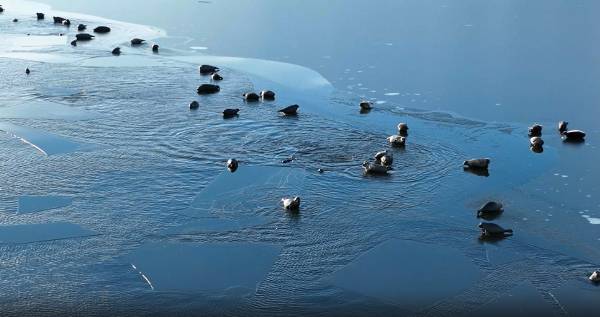 Старший государственный инспектор снял познавательное видео про отдых нерп на льду. На нем видно, как нерпы радуются жизни. У них «пляжный сезон» только начинается.