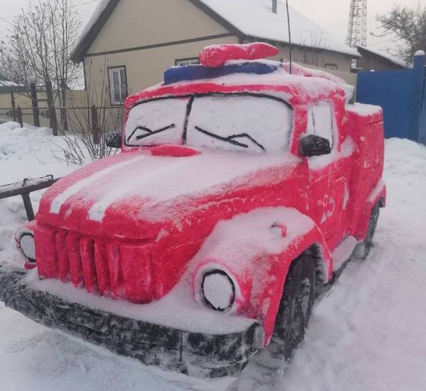 В республиканском агентстве ГО и ЧС рассказали, что пожарный Сергей Гусев и водитель пожарного автомобиля Алексей Корытов служат в части №25. В этом году они вновь порадовали коллег и сельчан своим зимним искусством.