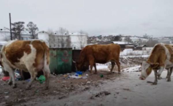 Накануне представители регионального отделения Народного фронта поделились в своём официальном telegram-канале видео, сделанным в Кяхте. На кадрах – коровы, которые поглощают лежащие у мусорных баков отходы и объедки.