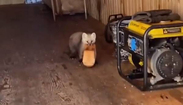 На кадрах видно, как бесстрашный соболь заходит в помещение в поисках добычи. Зверёк приметил картонную коробку, нырнув туда. Оттуда проворно вытащил булку белого хлеба и попытался убежать. Но госинспектора застала его «с поличным».