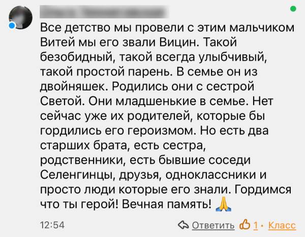 - Знакомые и друзья помнят Виктора, как доброго, общительного и улыбчивого парня, готового прийти на помощь по первому зову. Он был хорошим другом, заботливым отцом, - рассказали «Байкал-Dailу» в администрации Селенгинска.