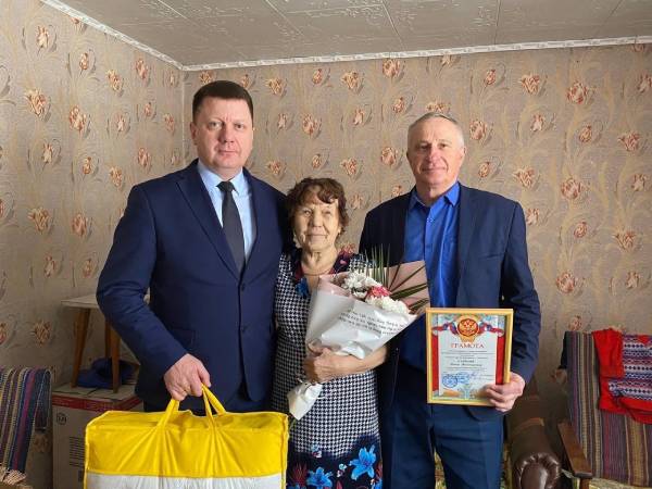 Юбиляршу поздравил и вручил ей грамоту глава Баргузинского района Михаил Мишурин.