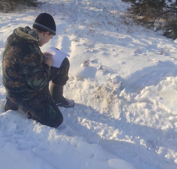 Они уже увидели следы зайца и куропаток. Это прекрасная возможность для юных натуралистов в практических условиях узнать больше о животном мире.