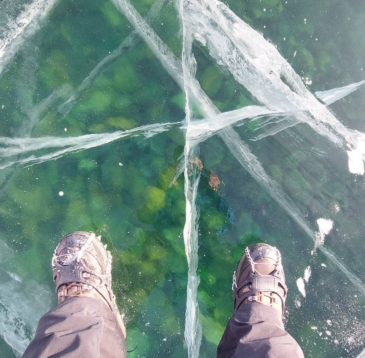 - Сегодня слышали супергром повсюду, а потом ощутили вибрацию и треск льда. Рука невольно потянулась растягивать карабин. Только через 2 км мы обнаружили становую трещину, а потом ещё н-ное количество их. Напился воды и получил новый опыт пересечения. Порой ходишь и плутаешь в лабиринтах. Не могу привыкнуть к кошкам, весь день в них, много льда, ноги затекают. Стёр задник внутри ботинка, а он стёр мне ногу, борюсь с этой проблемой. В Голоустное не могли зайти, свежая становая с водой, обходили. Сейчас в меня полетят камни, но идём в темноте, под луной, непривычно, дополнительно прощупываю палочкой подозрительные места. Становые проходили тоже в темноте, да простят меня гуру туризма. Я счастлив, так как исполняю мечту, хоть в конце и веду себя как зомби, - признался Иван Давыдов.