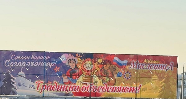 На днях в местном паблике zloi_03 во «ВКонтакте» разместили фото, сделанное около одного из крупных торгово-развлекательных центров Улан-Удэ. На снимке – баннер, посвящённый сразу двум праздникам, которые в ближайшее время отметит Бурятия – Сагаалгану (наступит 21 февраля) и Масленице (будет 20-го).