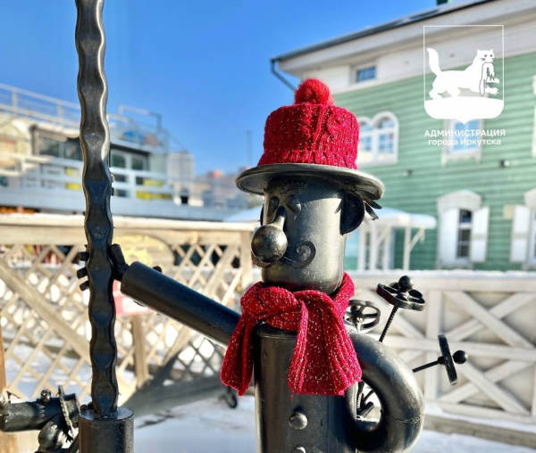 Это уже третья статуя, утеплённая в Иркутске. Как сообщал «Байкал-Daily», ранее согревающие аксессуары надели