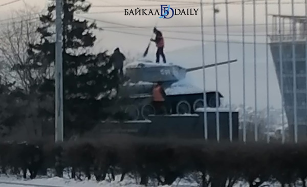 В Улан-Удэ очистили от снега танк, стоящий на постаменте у мемориала воинам Бурятии, погибшим в годы Великой отечественной войны. Это сегодня утром заметили горожане, поскольку уборка выглядела необычно, чем привлекла внимание прохожих.