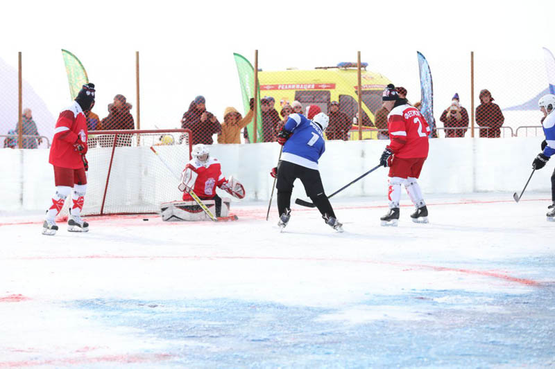 В международный женский день в посёлке Большое Голоустное Иркутской области на льду озера Байкал прошёл хоккейный матч с участием звёзд мирового спорта.