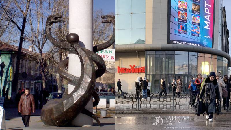 — А многие ли сейчас вспомнят, что было раньше на месте «Форума»? Два деревянных двухэтажных дома, массивная доска почёта Советского района с клумбами и стеклянным павильоном за ней, покосившееся здание Сбербанка — легендарный «Пти-Отель» и большой пустырь у подножия театра оперы и балета. Сверху на всё это взирала «Мать-Бурятия». А от «Свечки» (скульптурной композиции с гербом города — жезлом бога торговли Меркурия и рогом изобилия) отлично были видны и колоннада театра, и величественная скульптура с хадаком, — рассказывает фотокорреспондент Сергей Тарасенко.