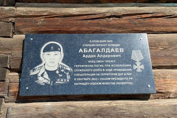 В селе Дутулур Закаменского района Бурятии установили мемориальную доску в память о сотруднике ОМОН «Кречет» территориального управления Росгвардии старшем сержанте полиции Ардане Абагалдаеве. Мемориальная доска появилась на фасаде дома, где вырос росгвардеец.