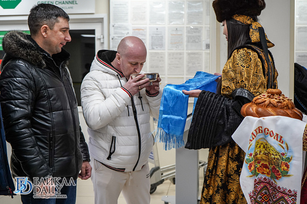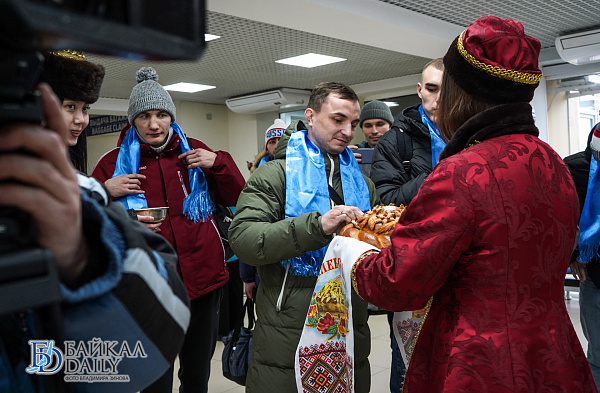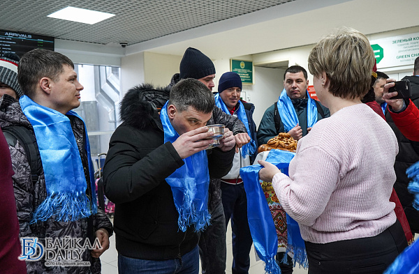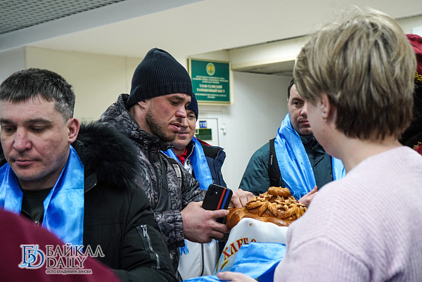 Традиционно спортсменов встретили в торжественной обстановке. В терминале аэропорта по русским обычаям им поднесли хлеб-соль, а по бурятским – белую пищу и хадак.