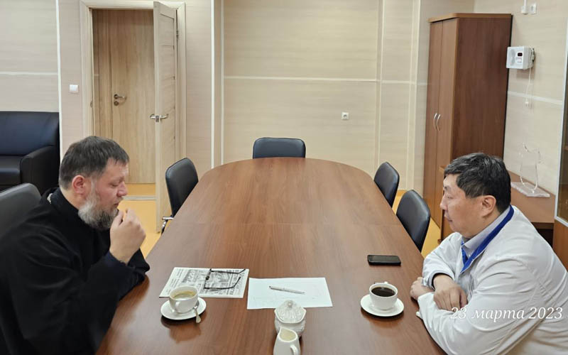 23 марта в Улан-Удэ прошла встреча глав республиканского перинатального центра и комиссии Улан-Удэнской и Бурятской епархии по связям с учреждениями здравоохранения. В ходе запланированной встречи обсуждался вопрос по организации молельной комнаты в перинатальном центре.