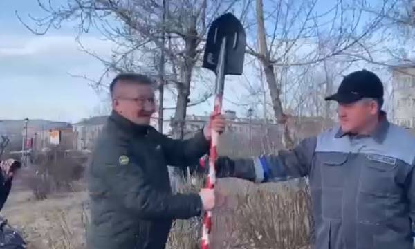 Горожане, депутаты и организации передают друг другу символическую лопату