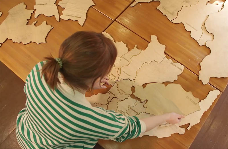 Для проекта был создан фанерный макет Иркутской области. Он состоит из 42 деталей в форме муниципальных образований региона. Вышивальщицы используют их как шаблоны, чтобы очертить на канве контур для изготовления своей части вышивки. Так, из отдельных, вручную заполненных фрагментов ткани, будет создано цельное полотно размером 2,5 на 2,5 метра. Его дополнительно украсят декоративные элементы, представляющие города области и озеро Байкал.