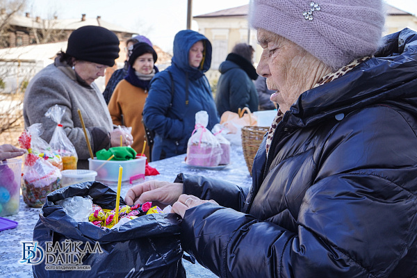 После окончания литургии были освящены, как положено по уставу, хлебы и вино, а затем на специально установленных на территории храма столах принесённые прихожанами пасхальные снеди — сдобные куличи, творожные пасхи и крашеные яйца, - сообщают в Улан-Удэнской и Бурятской епархии.