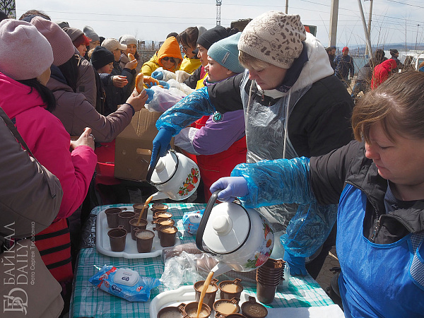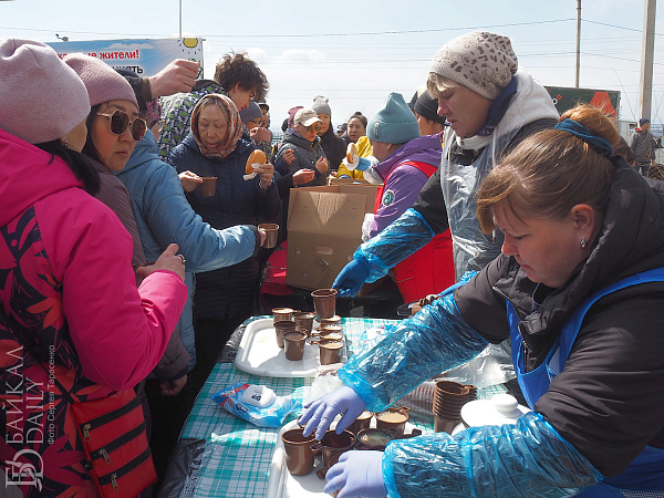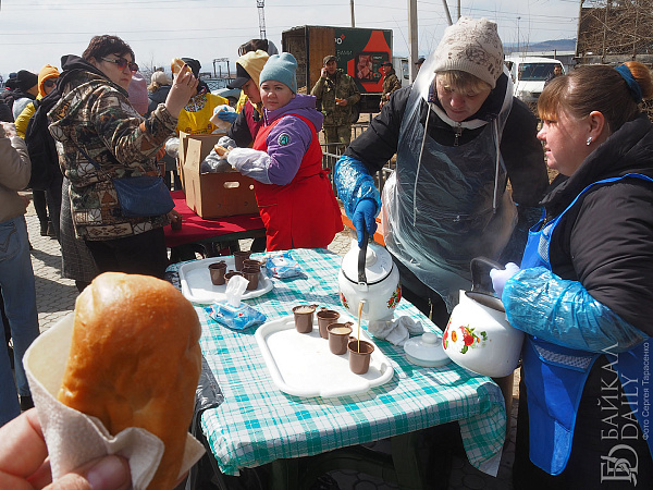 Через два часа после начала уборки в сквере, которая прошла в рамках общегородского субботника, выгрузили термосы с чаем и обещанные пирожки от фабрики «Селенга». Они, как и было обещано, оказались очень вкусными.