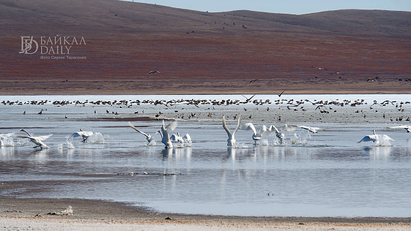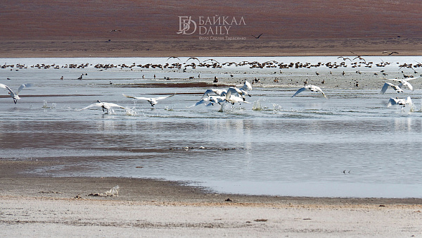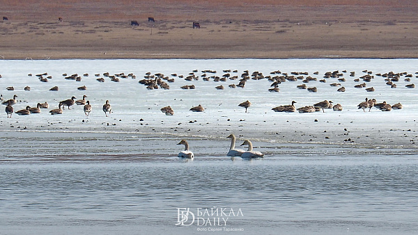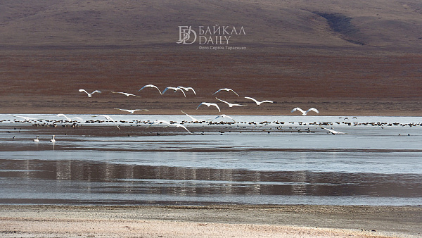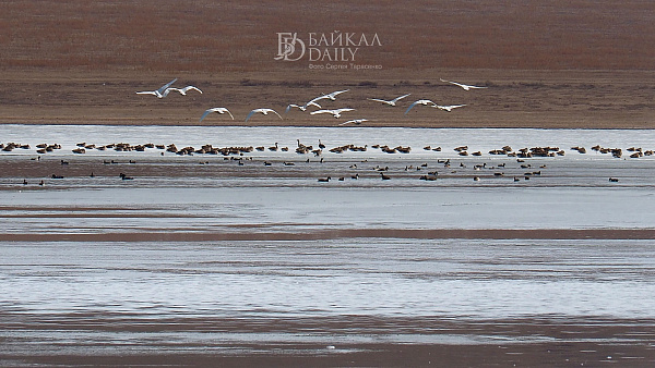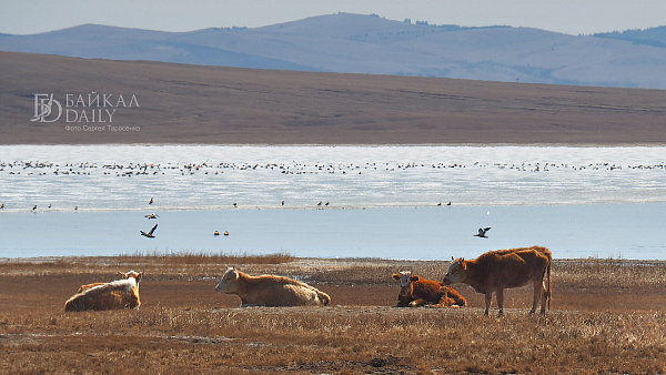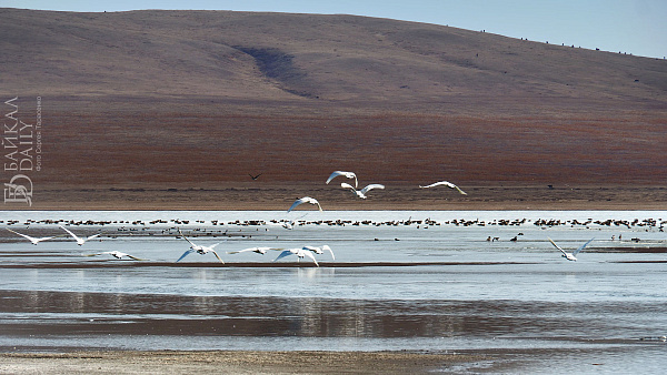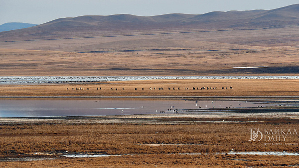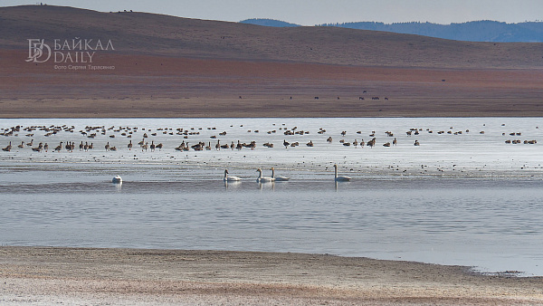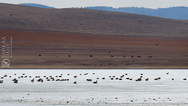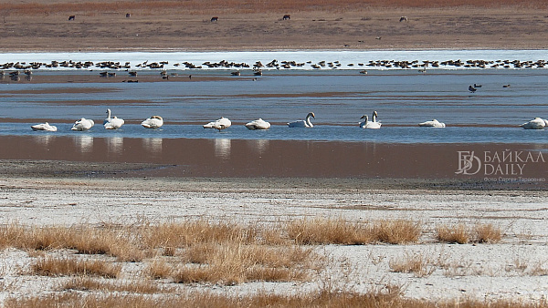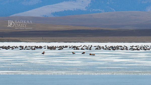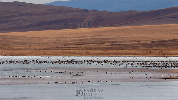 Перелётные птицы, возвращающиеся домой с зимовки, отдыхают на Боргойских озёрах в Джидинском районе Бурятии. Эти озёра, что находятся в Боргойском заказнике, - крупнейшее в Евразии место отдыха перелётных птиц. По подсчётам, за только серых гусей здесь останавливается по несколько тысяч в сутки.