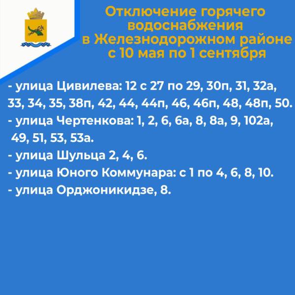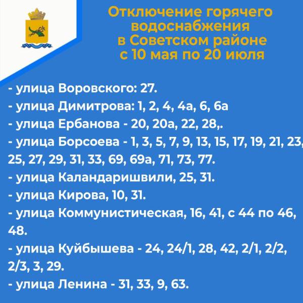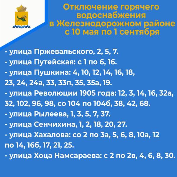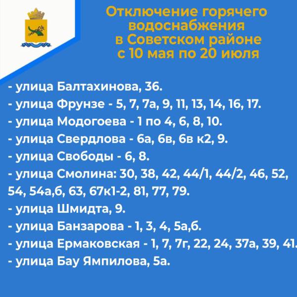Часть Улан-Удэ в связи с реконструкцией тепломагистрали №3 на длительное время останется без горячей воды. Отключение коснётся двух районов города – Железнодорожного (горячей воды не будет с 10 мая по 1 сентября) и Советского (там отключение запланировано с 10 мая по 20 июля).