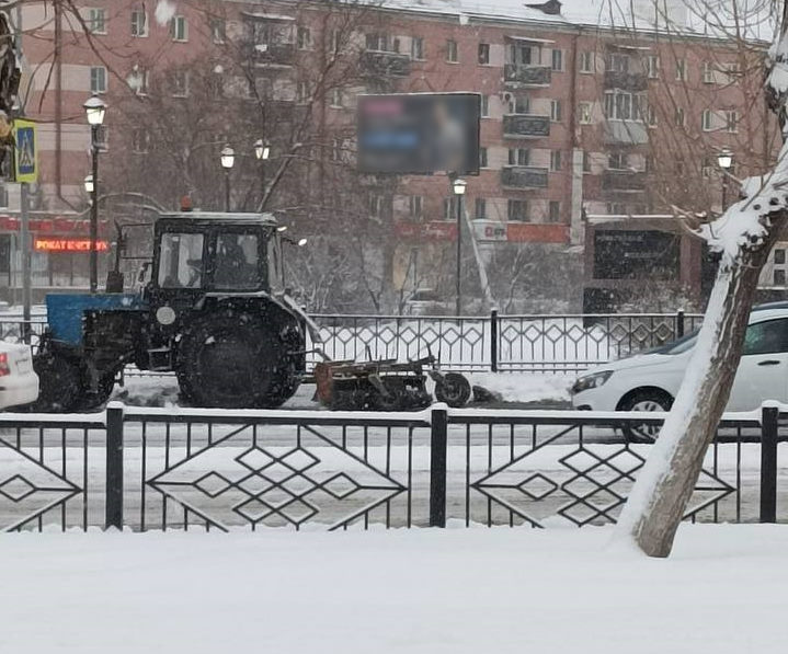 Тракторы-щётки чистят улицы Ленина, Комарова, Коммунистическая, Бабушкина, пр. 50-летия Октября и т.д.