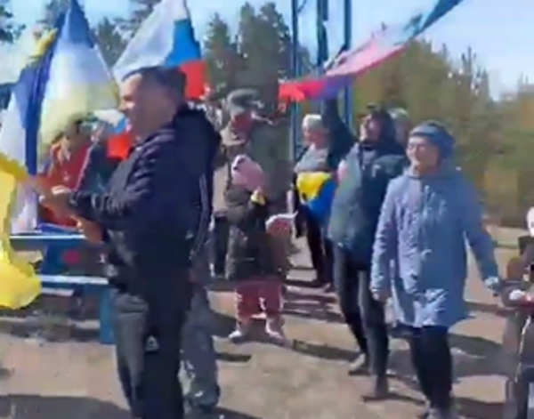 Когда автомобиль с военнослужащим приблизился, сельчане подняли флаги РФ и Бурятии. А ещё они принесли с собой красные, голубые и жёлтые воздушные шары. Участнику СВО преподнесли каравай по русским обычаям и хадак – по бурятским.