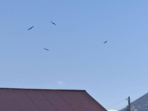 В тот же день во время проведения торжественного митинга в честь 78-й годовщины Победы кружила пара коршунов. Затем прилетели орлы. Их было больше 15-ти, рассказали сотрудники местной Бурунгольской средней школы.