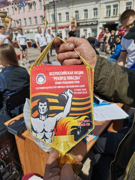 9 мая на площади Революции в Улан-Удэ прошла традиционная всероссийская акция «Рекорд Победы». Её участники выполнили 28 489 подъёмов гири – ровно столько дней прошло с окончания Великой Отечественной войны. Гири весят 16 кг.