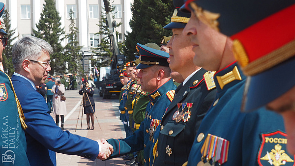 - Сегодня в параде идут в строю военнослужащие из братской Монголии. Когда японские милитаристы напали на Монголию, Советский Союз пришёл на помощь в бою на Халхин-Голе. Там мы вместе защитили целостность страны. Когда фашистская Германия напала на Советский Союз, Монголия первая встали с нами плечом к плечу и оказала неоценимую помощь в победе над фашизмом, - отметил Цыденов.