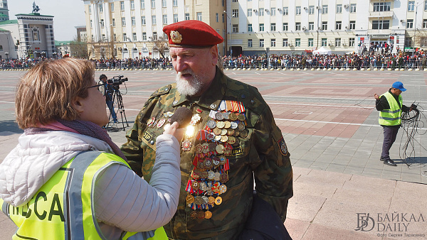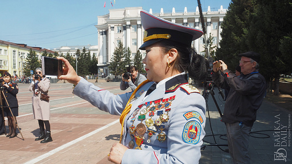 В этом году улан-удэнцам повезло с погодой. Светило яркое солнце, было 20 градусов тепла. Ещё до начала парада вся площадь была заполнена людьми. Несмотря на то, что шествие «Бессмертного полка» отменили, у многих на одежде были портреты своих близких – участников войны и тружеников тыла. Также сегодня предлагается сменить фотографию в профиле социальной сети на портрет своих героев.