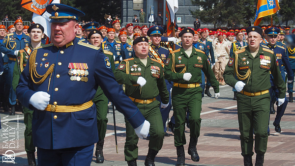 Всего на главной площади Улан-Удэ маршировали более 1000 военнослужащих – представители ракетного, зенитно-ракетного соединений, воздушно-десантных войск, воздушно-космических сил, представители общевойсковых армий, Вооружённых сил Монголии, войска материально-технического обеспечения, подразделения РХБ защиты и сводные парадные расчёты женщин-военнослужащих. Также по площади Советов прошлись сотрудники Росгвардии, юноармейцы, воспитанники республиканской кадетской школы-интерната.