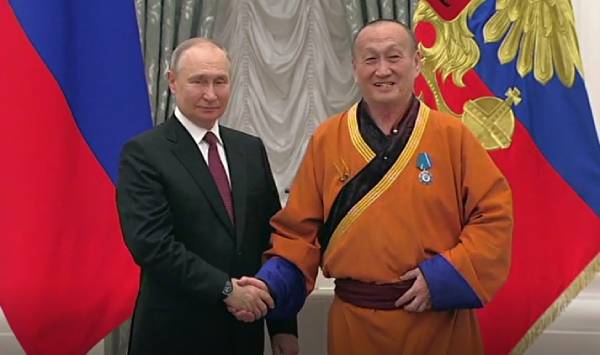 Пандито Хамбо Лама Дамба Аюшеев, глава Буддийской традиционной Сангхи России 23 мая получил орден Почёта из рук президента России Владимира Путина. Награждение государственными наградами РФ прошло в Екатерининском зале Кремля.