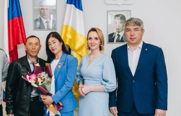 Глава Бурятии напомнил: у Людмилы Бадмаевой и её мужа Алексея – десять ребятишек. Он поздравил супругов с присвоением звания «Мать-героиня».