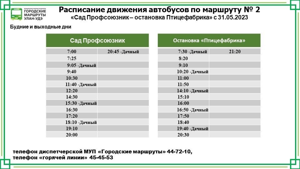 Один из них будет дачным – для всех пассажиров-пенсионеров на нём действует льготный проездной, сообщили в МУП «Городские маршруты». График движения уже согласовали.