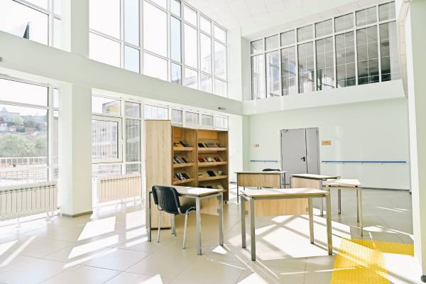 Здание выполнено со стеклянными витражами, высокими потолками и просторными залами. В нём предусмотрены современный актовый зал, спортзал с тренажёрами, парикмахерская, читальный зал, помещение для религиозных обрядов, компьютерный класс и т.д. В каждой комнате и в местах общего пользования установлены пандусы, поручни, кнопки вызова персонала, указатели, в том числе с использованием шрифта Брайля.