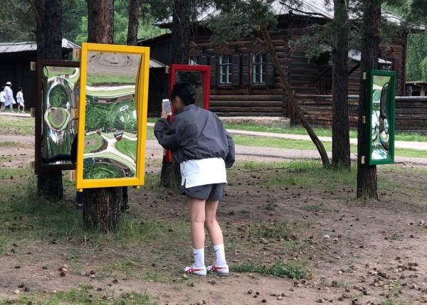 В Этнографическом музее народов Забайкалья появились кривые зеркала. Они находятся на открытом воздухе, полюбоваться в них может каждый посетитель.