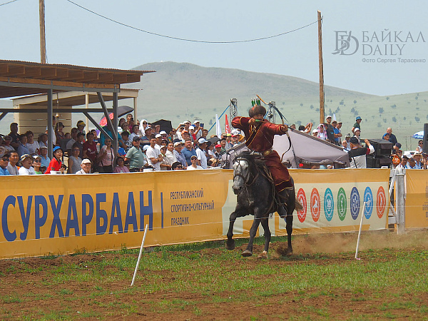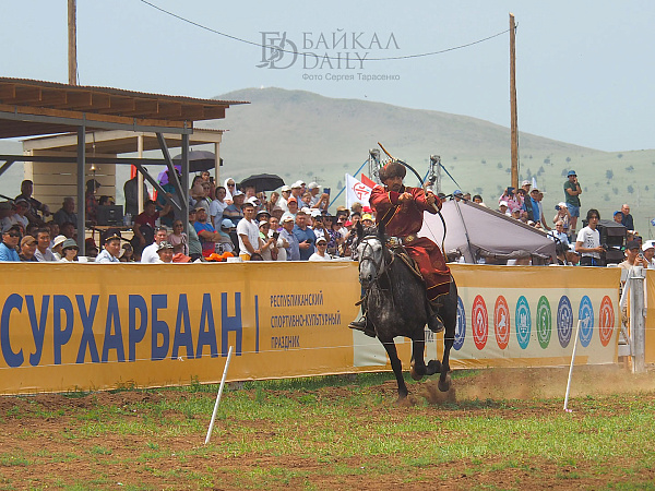 Утром 8 июля на ипподроме Янгажинского дацана в Иволгинском районе стартовал главный праздник лета в Бурятии «Наадан-Сурхарбаан - 2023». Здесь прошли соревнования по конным скачкам, по разбиванию хребтовой кости, по поднятию ловчего шеста и показательные выступления по конной стрельбе из лука.