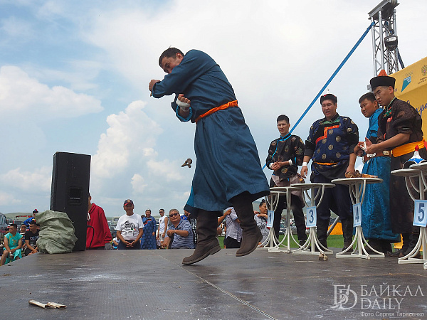 Сегодня на Центральном стадионе в Улан-Удэ с 9:00 стартовали соревнования по разбиванию хребтовой кости «Һээр шаалган», бурятской борьбе «Бухэ барилдаан», стрельбе из бурятского лука «Сурхарбаан», бурятским шахматам «Шатар», традиционной бурятской игре «Шагай наадан», гиревому спорту. А в 18:00 пройдут поединки за звание абсолютного чемпиона.