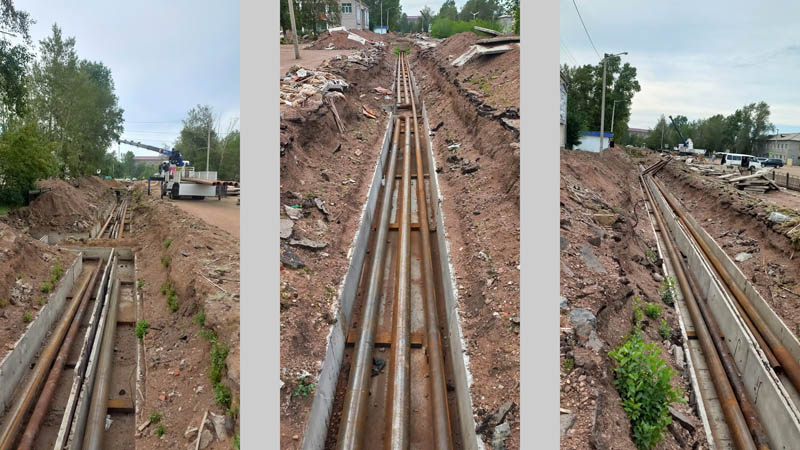 Сумма контракта составляет 52,66 млн рублей. По информации администрации Хоринского района, проведены вскрышка теплотрассы от котельной «Квартальная» по улице Ленина (от ТК4 до ТК13, от ТК13 до ТК18, от ТК13 до ТК31), демонтированы старые трубы, задвижки, колодцы, расчищены лотки, завезён необходимый материал: трубы, отводы, задвижки, утеплитель, металл, краска, укладывается участок теплосети на улице Ленина.