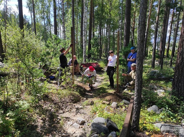 Тропу расчистили, сделали там вход и два места для отдыха, установили пять информационных стендов и 18 знаков навигации и изготовлена кабинку для туалета.