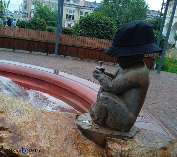 Улан-удэнцы продолжают наряжать «Мальчика с птичкой». На этот раз на произведение Даши Намдакова надели чёрную панамку. Возможно, кто-то таким образом решил уберечь голову скульптуры от дождя, который моросит сегодня в бурятской столице.